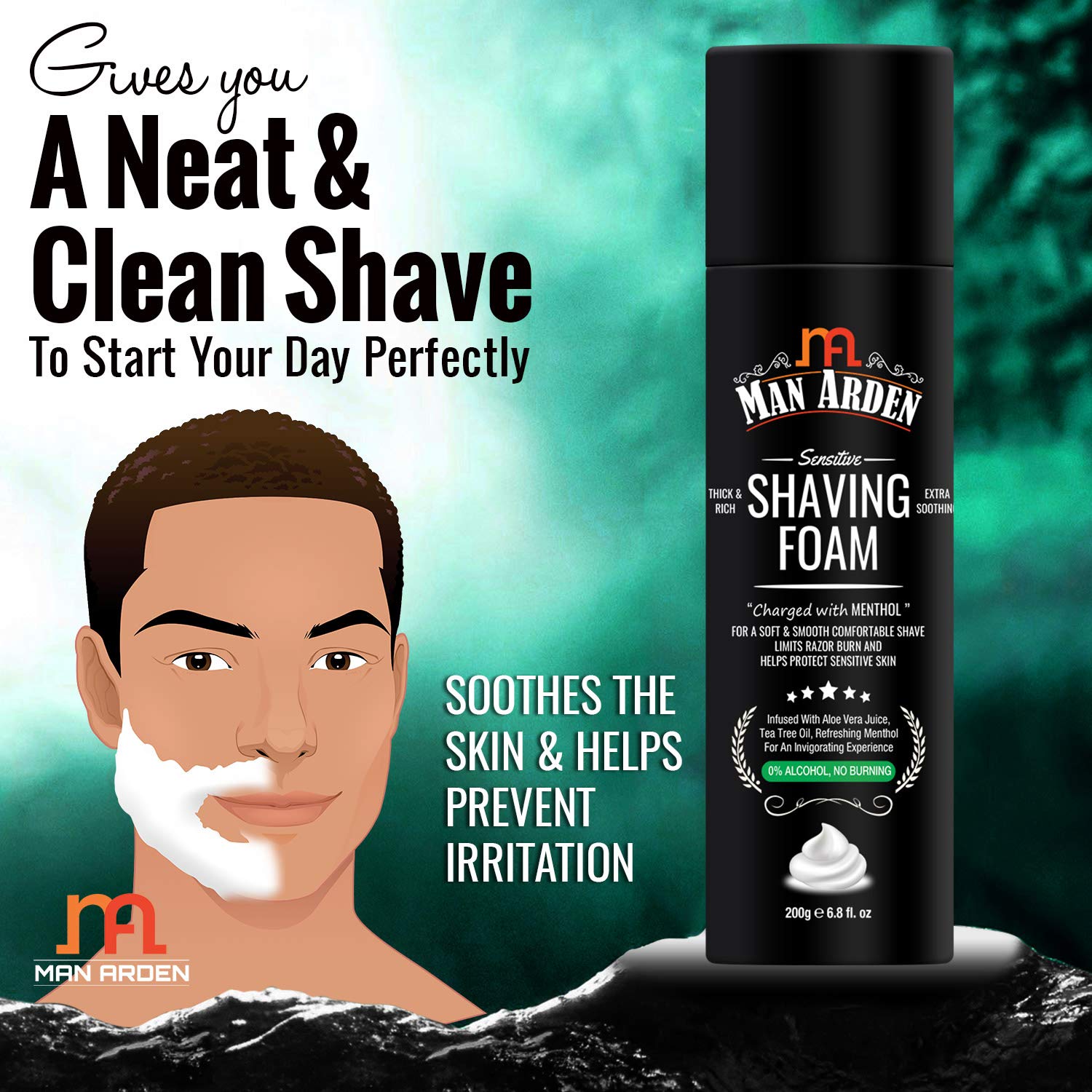 Aloe vera present in the shaving foam keeps skin hydrated after shave. Tea tree oil helps reduce inflammatory skin reactions, rashes, razor burns and acne.