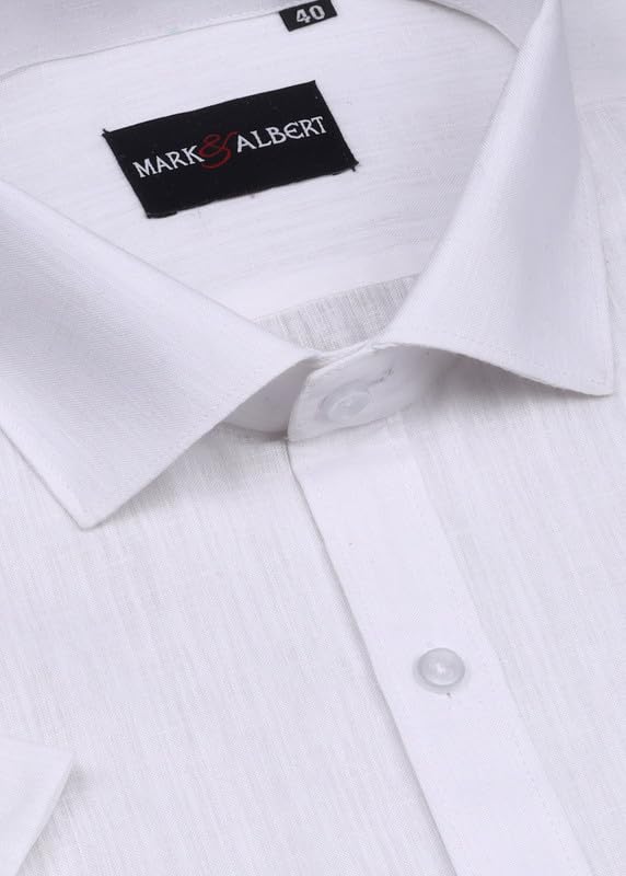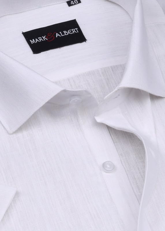 MARK & ALBERT Men’s Half Sleeve Pure Linen White Shirt