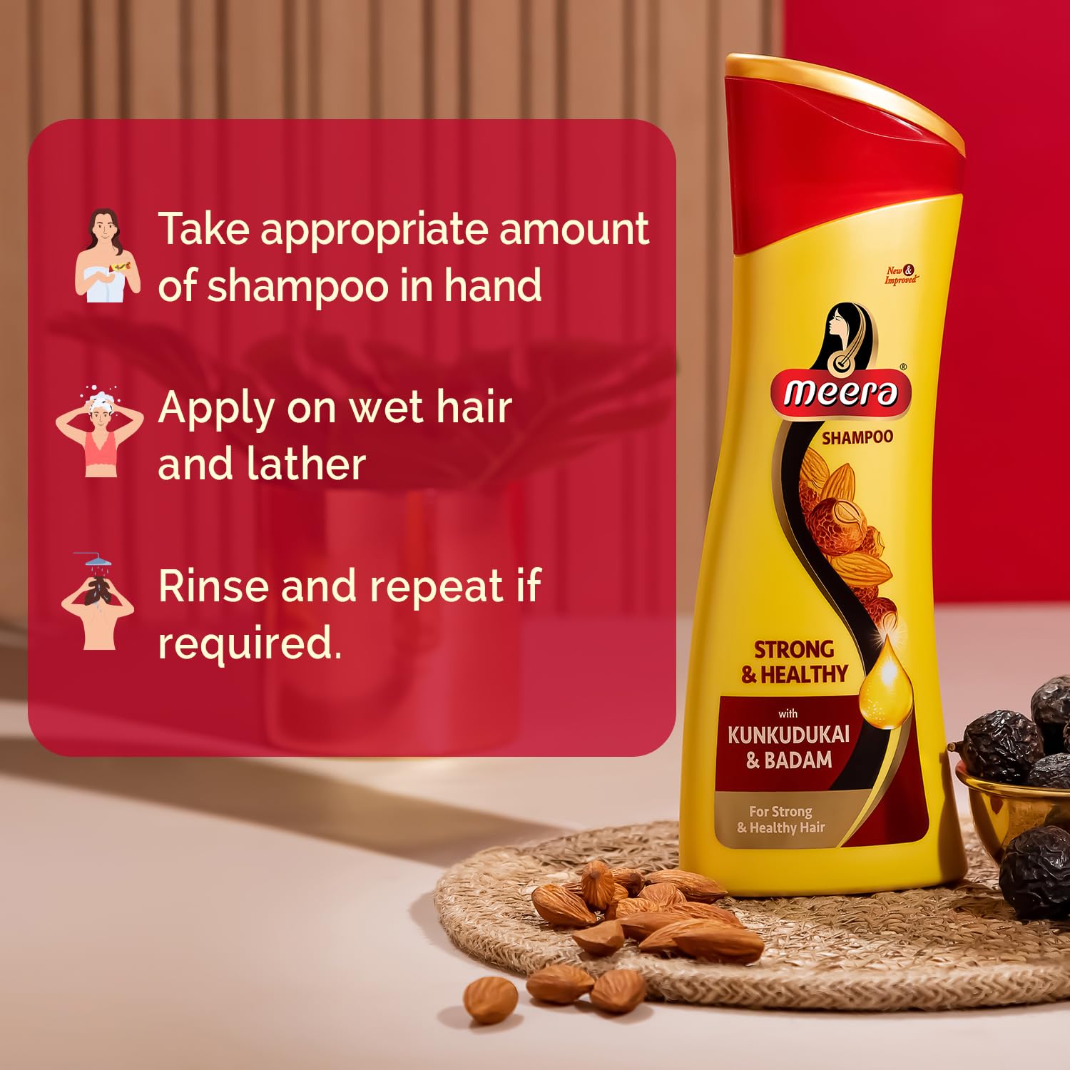 Meera Strong and Healthy Shampoo, With Goodness of Kunkudukai & Badam,Gives Soft & Smooth Hair, For Men and Women,Paraben Free, 180ml