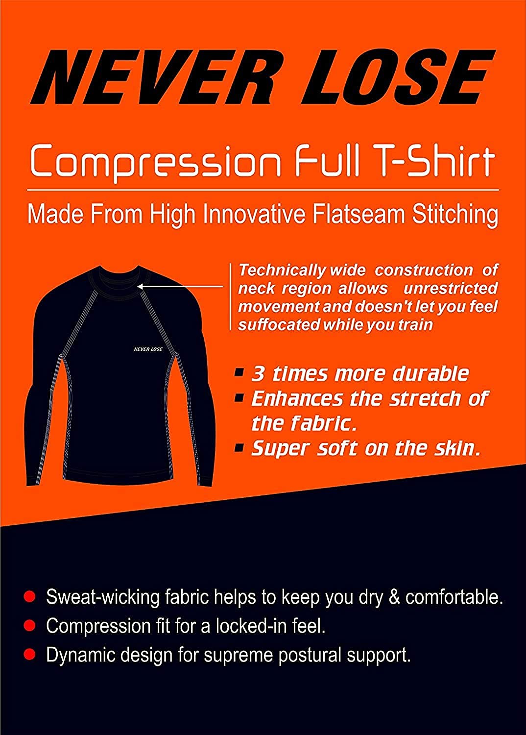 NEVER LOSE Men’s Compression Ultima T-Shirt Top Skin Tights Fit Lycra Inner Wear Full Sleeve for Gym Cricket Football Badminton Sports (XS)