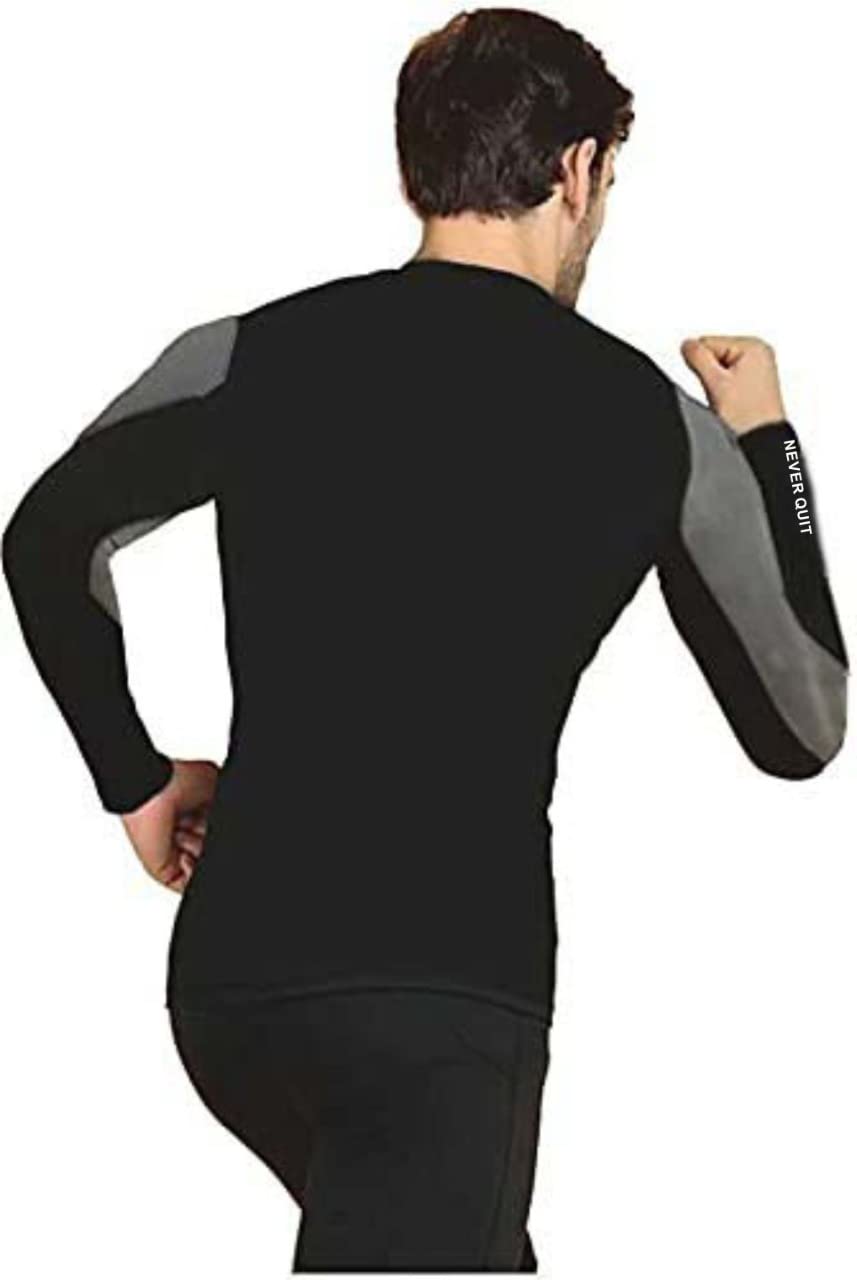 NEVER QUIT Men�s Slim Fit Polyester Full Sleeve Grey Black T Shirt – Compression Tight Top Base Layer for Gym, Cycling, Running Other Sports (XX-Large, Grey-Black)