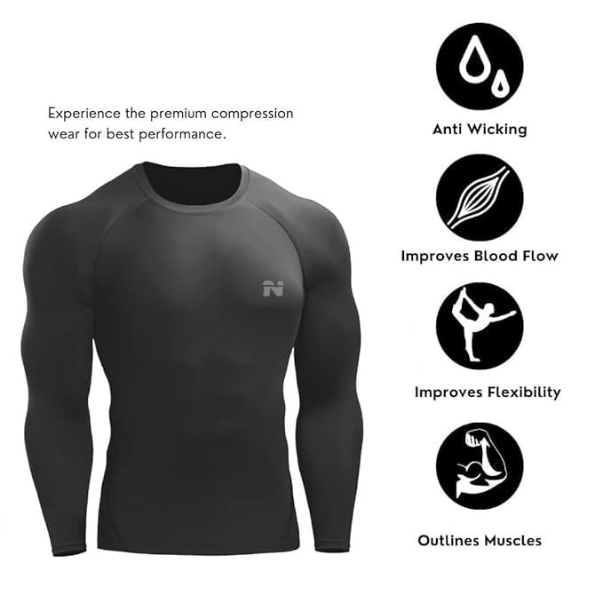 NINQ Men’s Premium Full Sleeve Compression T-Shirt – Athletic Base Layer Tights for Fitness & Sports.