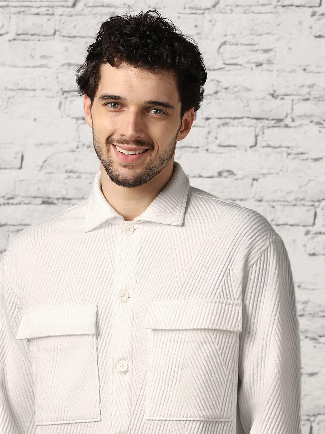 NOBERO Men’s Standard Length Oversized Textured Shacket | Quilted | Cotton | Cuffed Sleeves | Winter Jackets | Shackets For Men