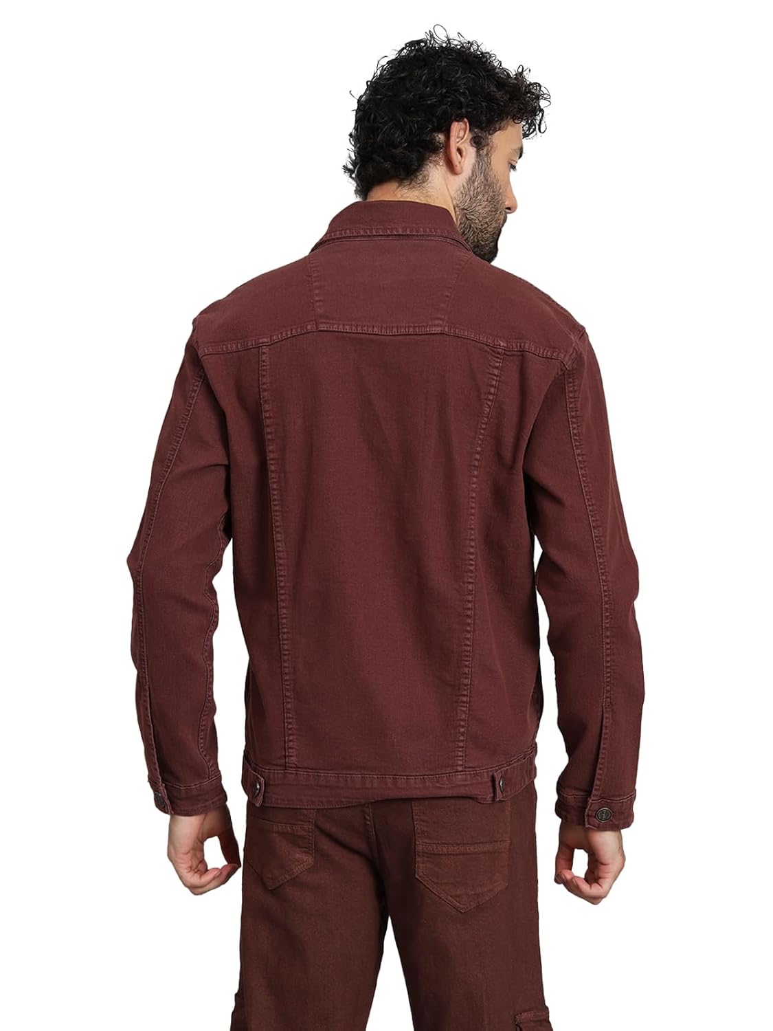 Embrace timeless style with the Peplos Maroon Color Denim Jacket for Men. This modern take on classic denim features a sleek, dark black wash for a refined, sophisticated look. Crafted from high-quality, durable denim, it’s designed to withstand the rigors of everyday wear while providing unmatched style. The jacket’s versatile design makes it a perfect layering piece for casual outings, or paired with a t-shirt for a laid-back vibe. Whether you’re heading to work or going out with friends, this denim jacket is a wardrobe essential for any fashion-forward man.