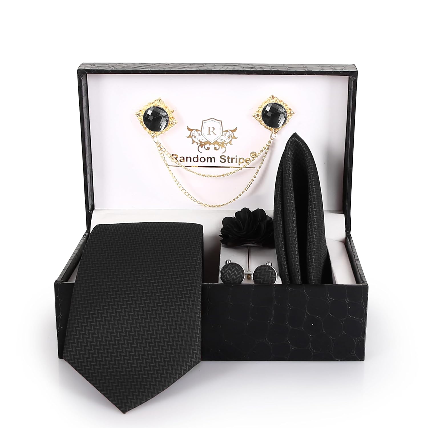 Be the first to review “RANDOM STRIPE Men Necktie Set With Pocket Square Lapel pin & Cufflinks party business pack”