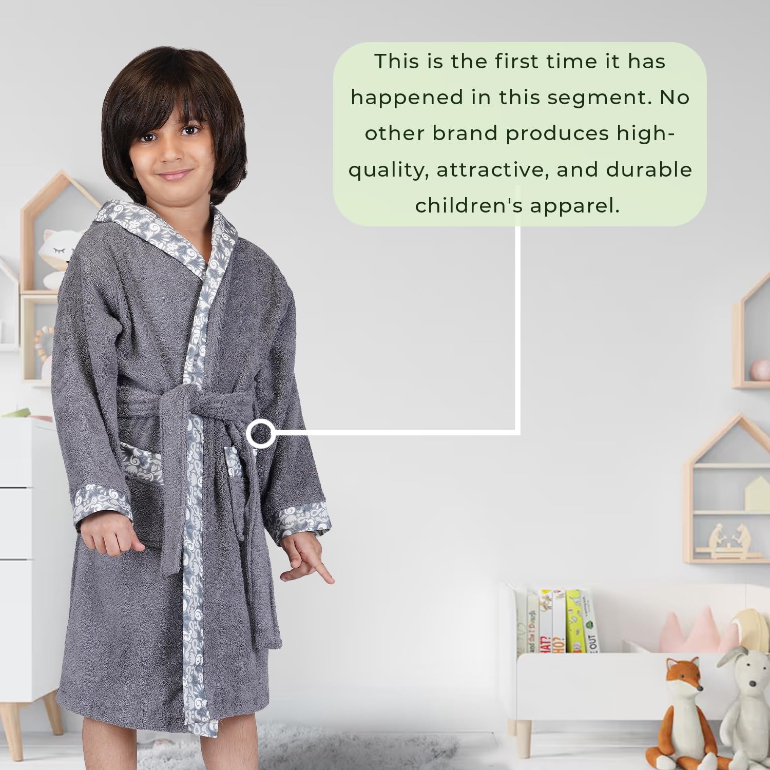 💧 Optimal Absorbency- With a high GSM of 460, this bathrobe quickly absorbs moisture, keeping your child dry and cozy after baths or swimming.