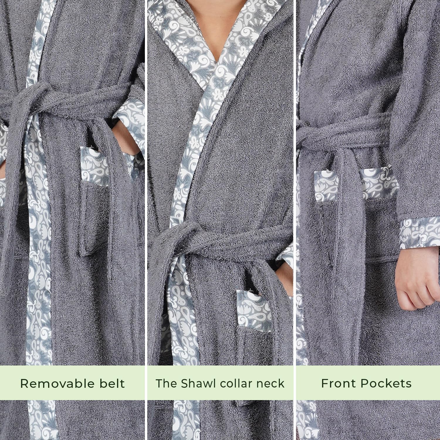 🌱Luxurious Bamboo Fabric- Crafted entirely of fine bamboo yarn, this bathrobe is unbelievably soft, breathable, and kind to delicate skin, offering your children the ultimate in comfort.