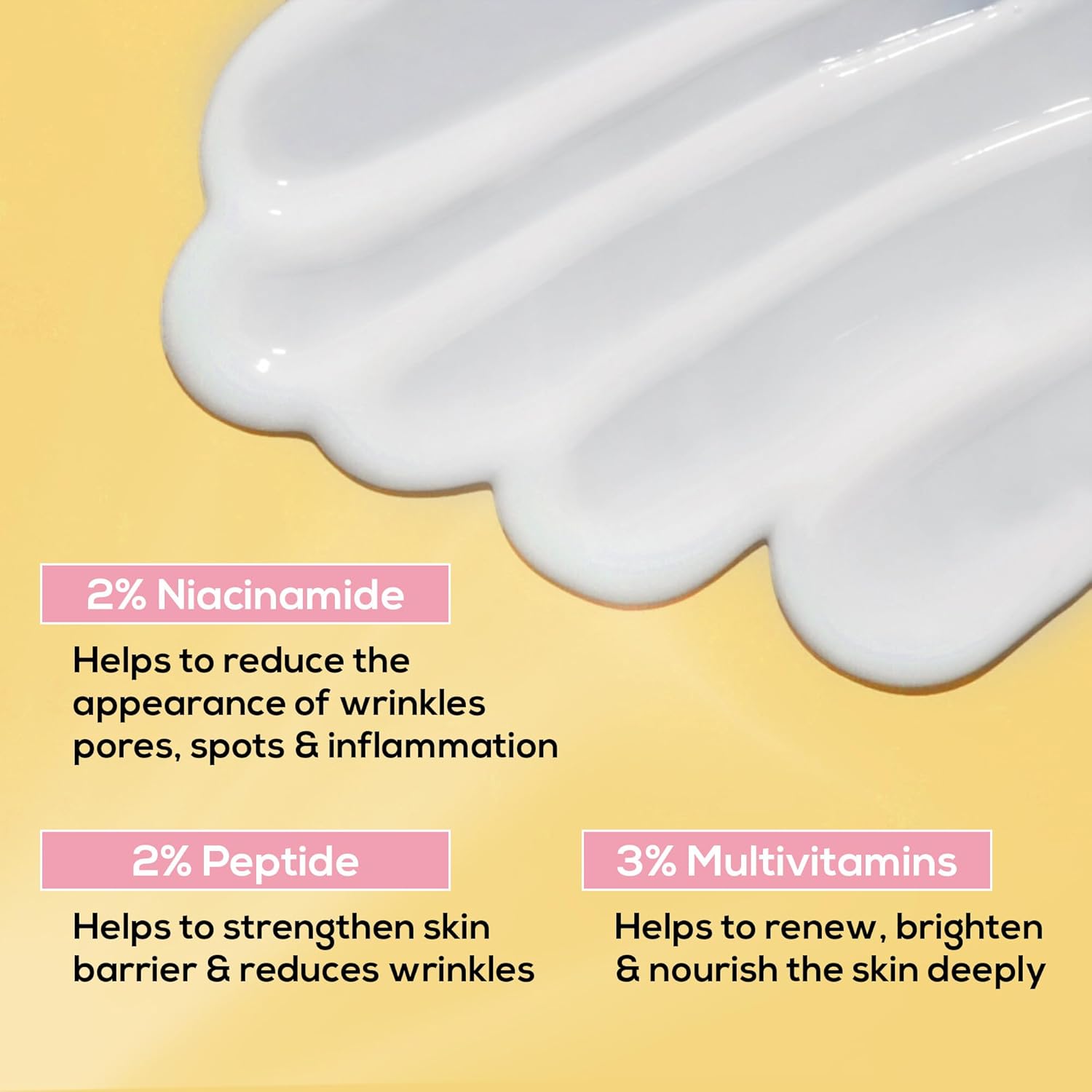 Enriched with 3% multivitamins, 2% Peptides & 1% Niacinamide