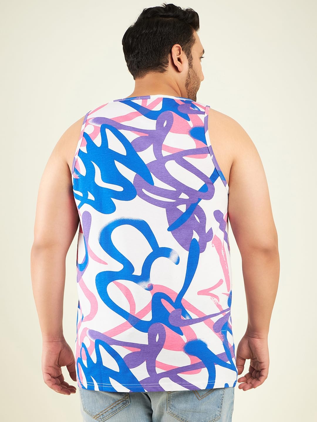 RodZen Men’s Plus Size Cotton Sleeveless Doodle Printed T-Shirt