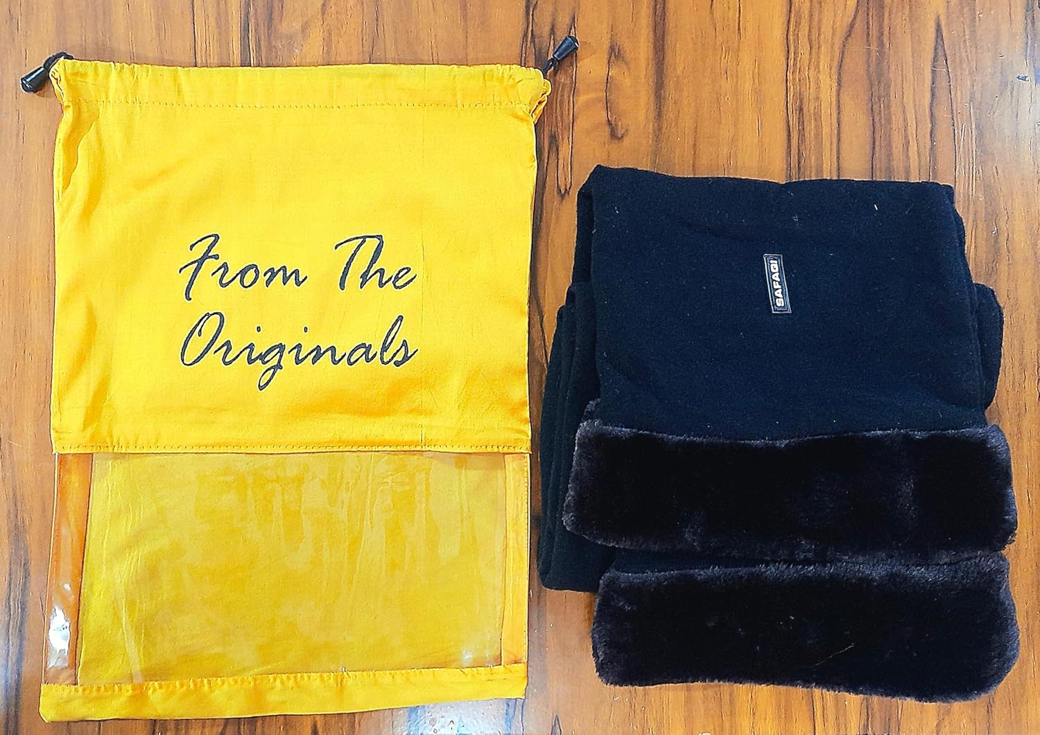 Be the first to review “SAFAQI Unisex Winter Woolen Muffler Scarf With Fur Ends and Free Silk Fabric Drawstring Pouch Bag with Transparent Window – 100% Pure Lambs Wool With Faux Fur”