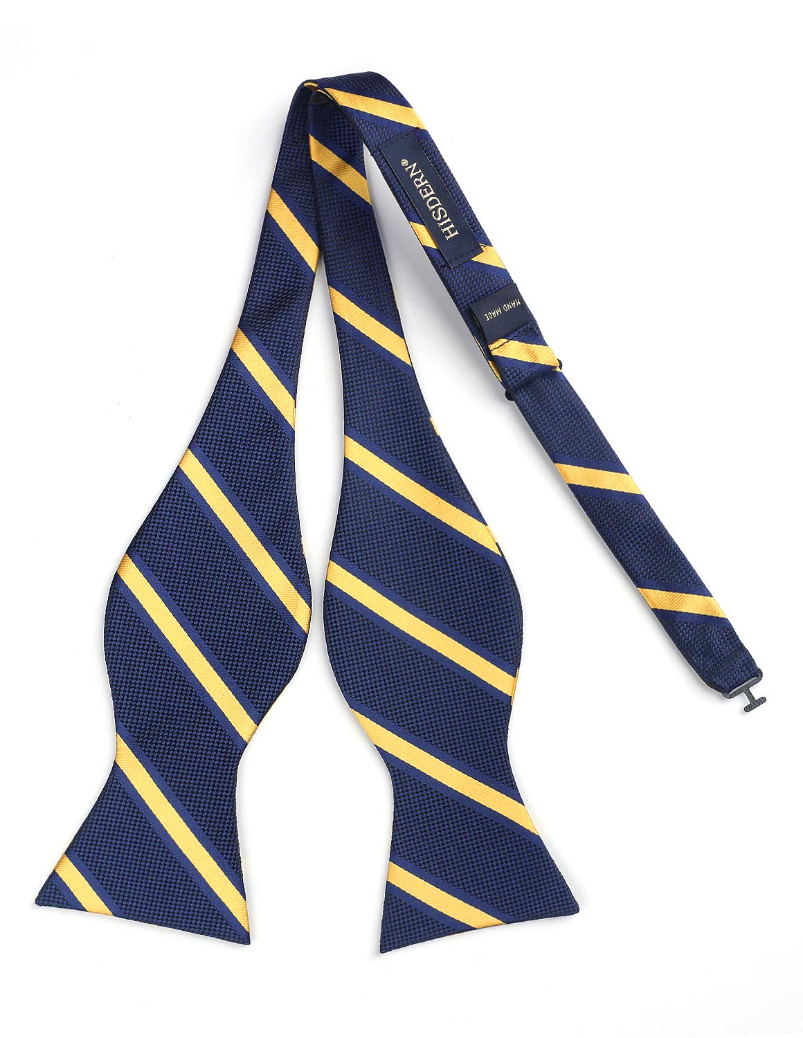 SetSense Men’s Stripe Jacquard Woven Self Bow Tie Set One Size Navy Blue / Yellow