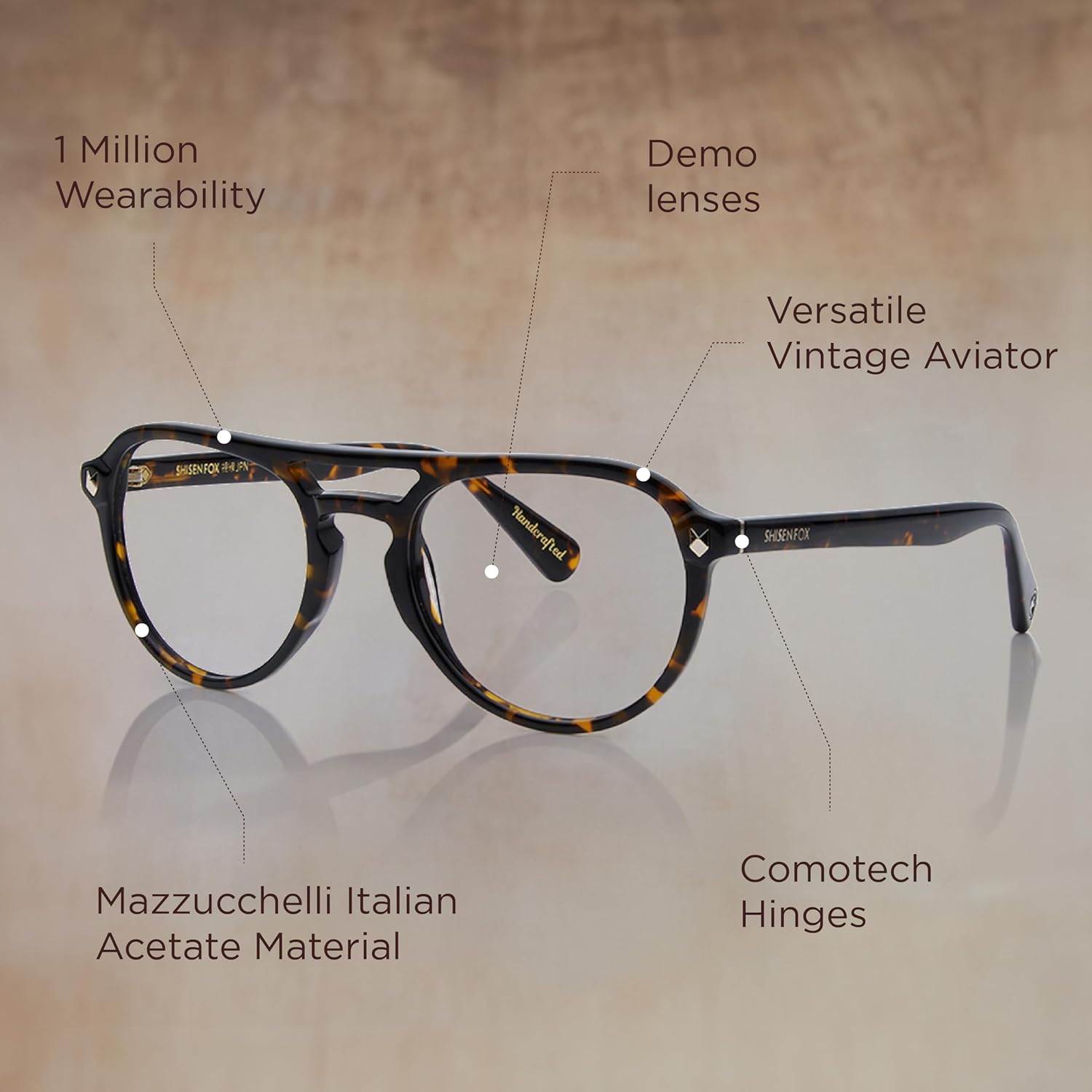 Shisen Fox KAIZEN Versatile Vintage Aviator Frames for eyeglasses | Stylish eyewear Crafted from Italian Acetate material | 55 MEDIUM Unisex Spectacle Eye frame with Demo lenses