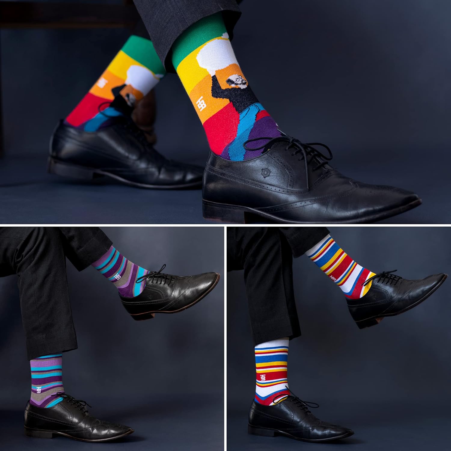 SockSoho Premium Men Pure Cotton Socks | Power Gift Box (Multicolor, Combo of 7, Crew length)