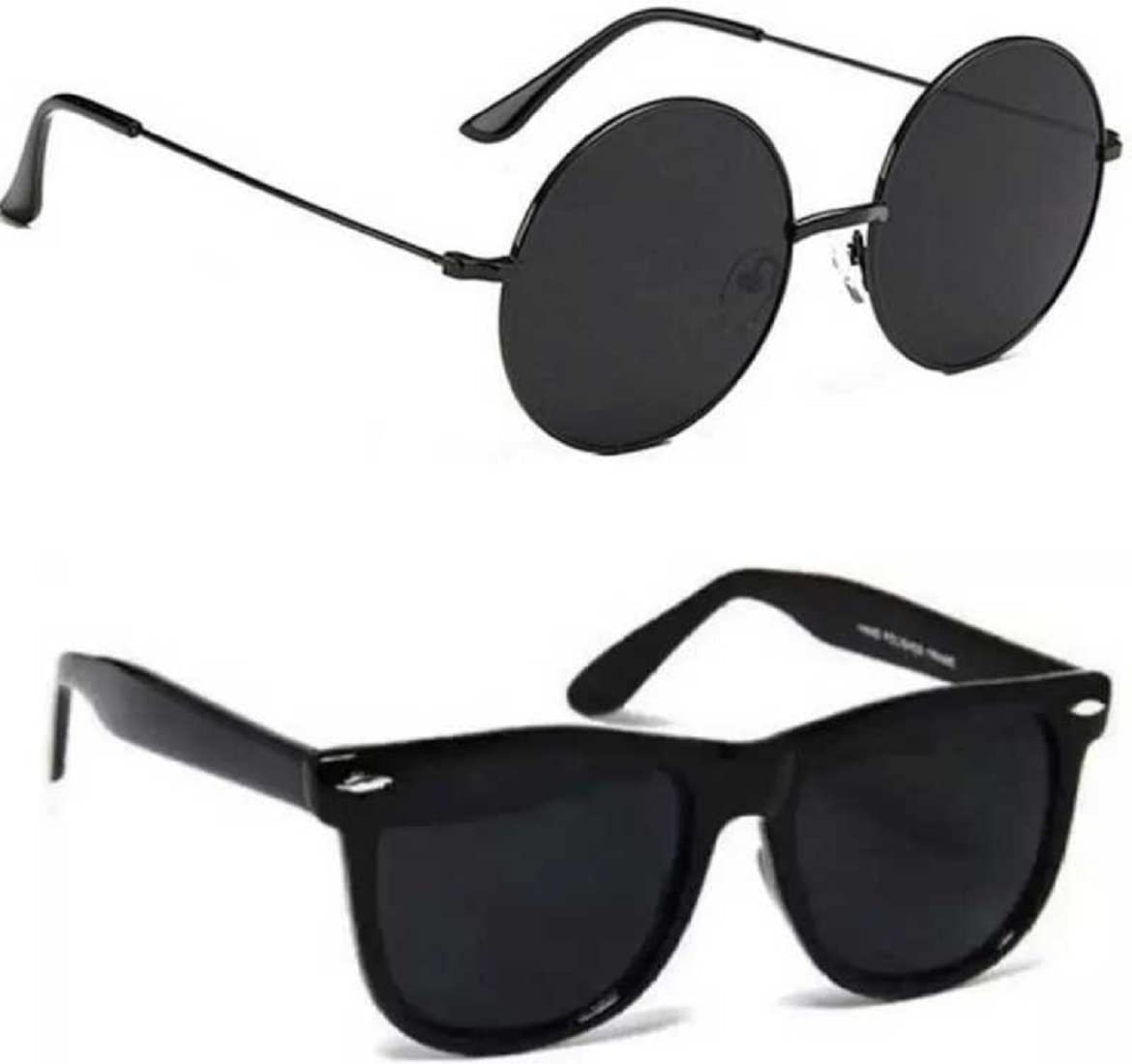 Sunwear UV-Protected Unisex Wayfarer And Round Combo Pack Of 2 Sunglasses