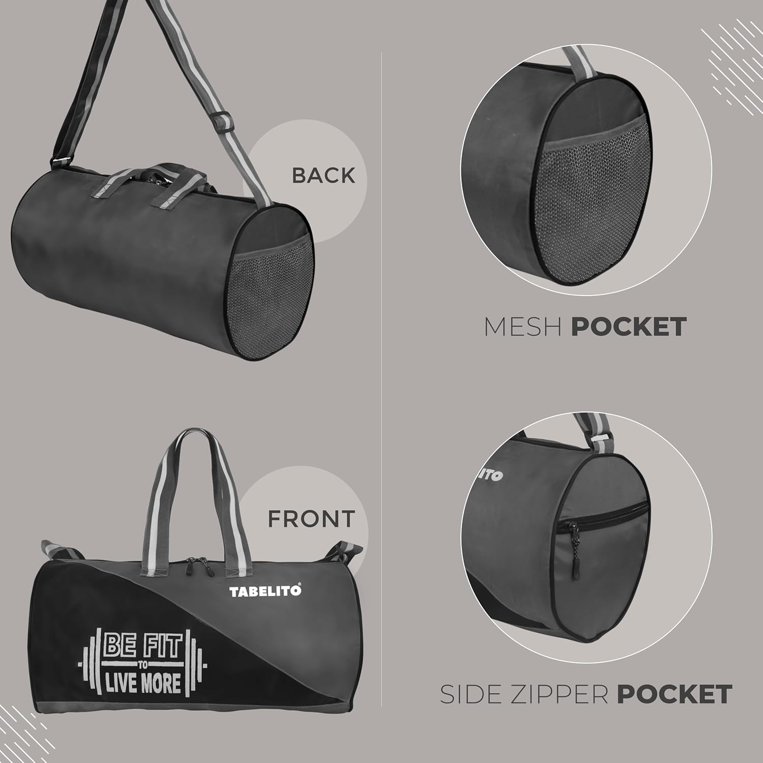Adjustable Strap – The shoulder strap allows the gym bag to be switched to a crossbody sports bag at any time depending on usage habits. Before and after training, the Tabelito Workout Gym Bag is the perfect accessory for regular use.