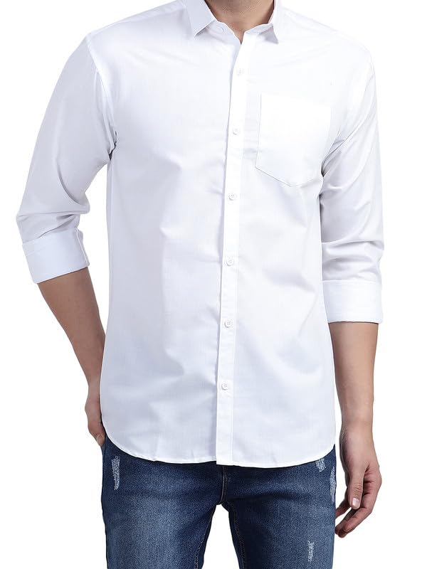 Tee Projekt Men’s Solid Slim Fit Cotton Formal Shirt with Spread Collar & Full Sleeves