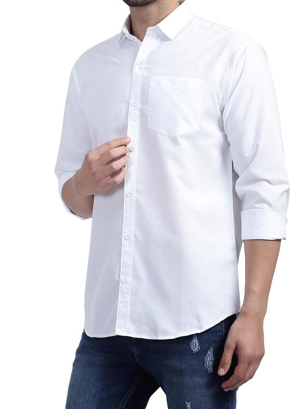 Tee Projekt Men’s Solid Slim Fit Cotton Formal Shirt with Spread Collar & Full Sleeves