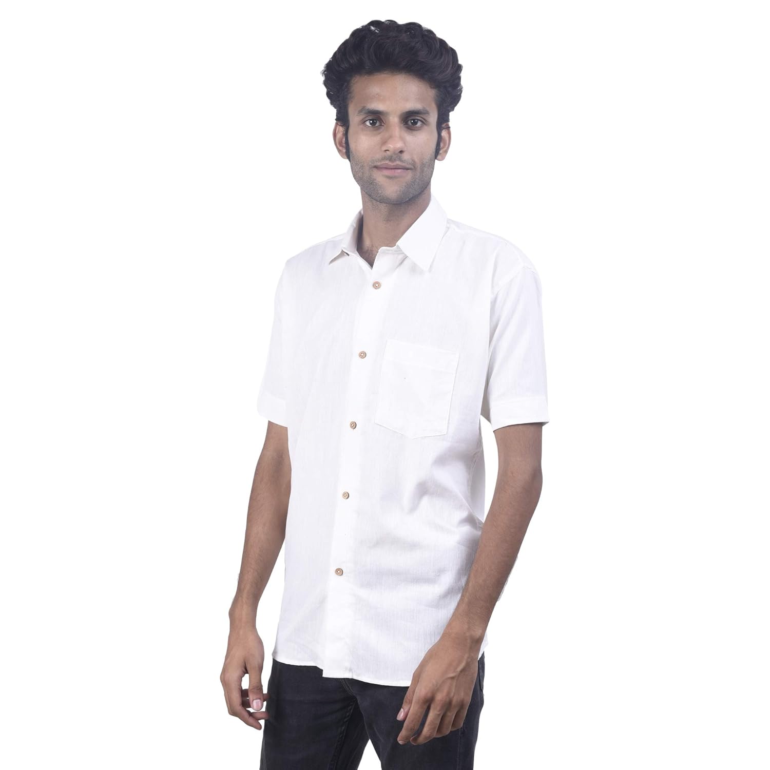 Tribes India Handmade Mens’ Cotton White Full Length Shirt (1STXMENMP01599-0)