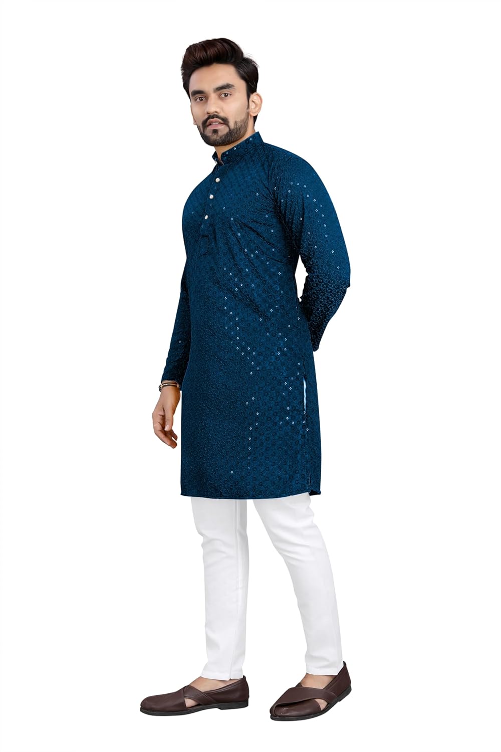 Chikankari Embroidery: Adorned with traditional chikankari work, this kurta features delicate and intricate floral and paisley patterns, hand-embroidered by skilled artisans.