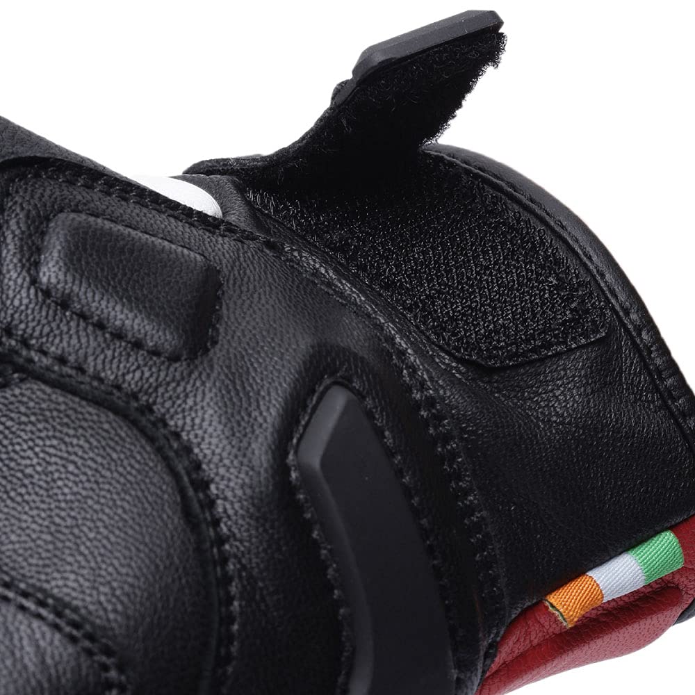 Tailored Comfort: Our gloves, designed with a blend of perforated Goat Nappa leather, faux leather, textiles with spandex, poly-corduroy fabric, and mesh, ensuring a comfortable and snug fit. This intricate design allows for effective internal climate control, making them the ideal riding gloves for long journeys.