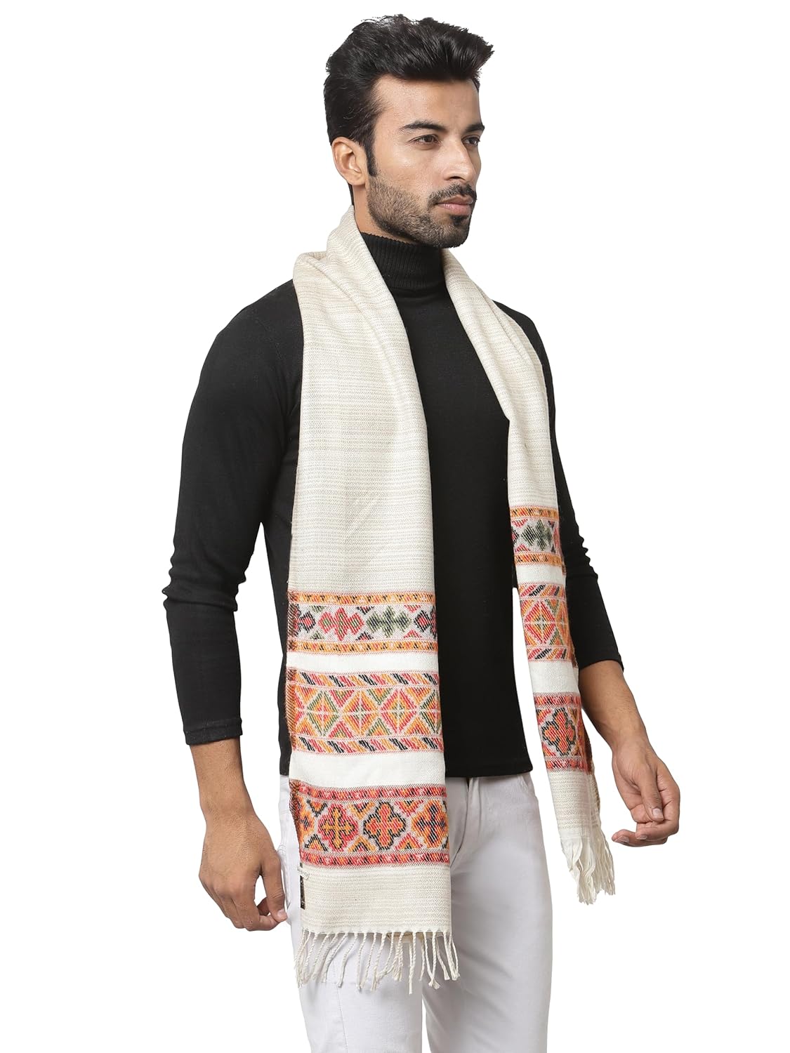Weavers Villa Acro Wool Men’s Muffler (MF-902,Cream Size: 34CM X 200CM)
