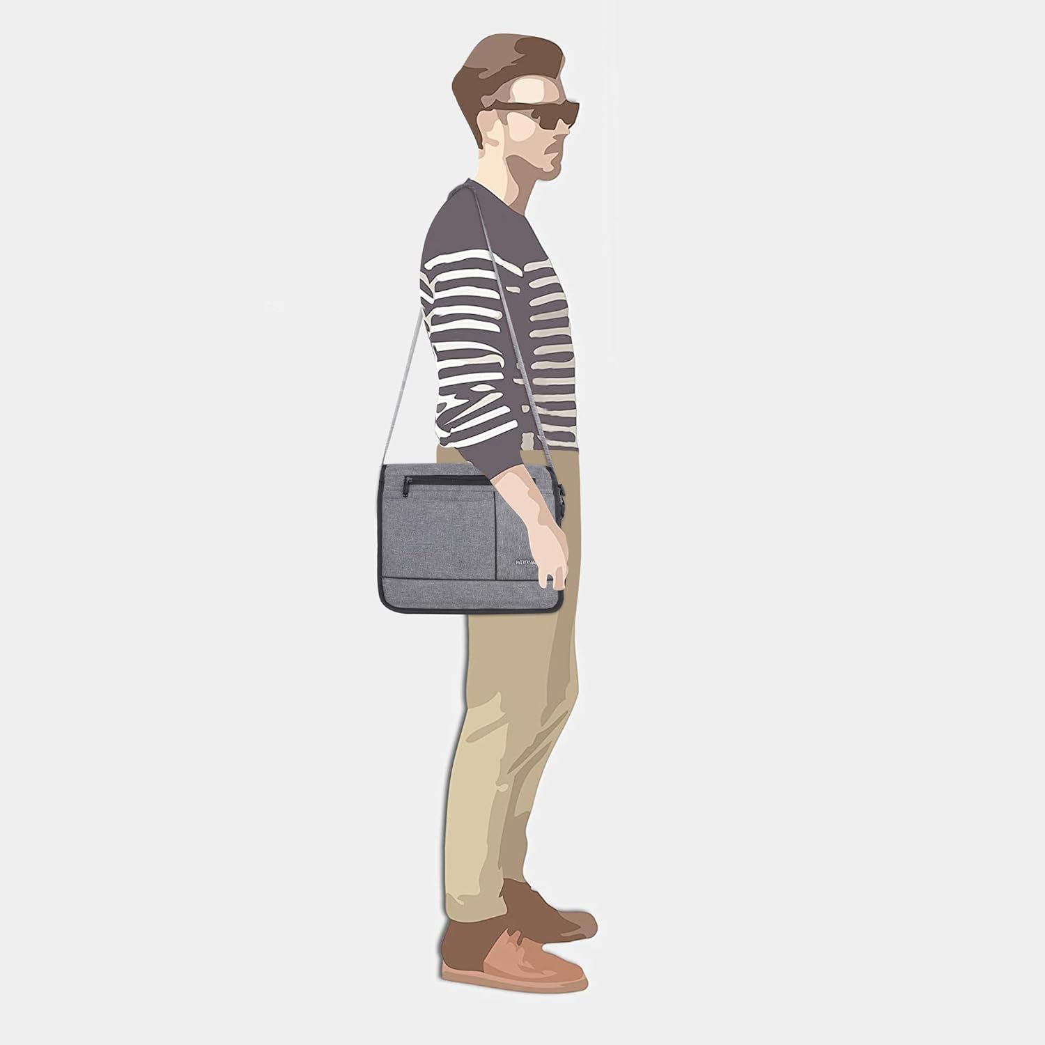Wooum Travel Messenger Bag, a versatile and stylish solution for all your travel and daily needs. Designed with functionality and durability in mind, this bag is perfect for professionals, students, and travelers alike. Here’s a detailed look at its features: Perfect Size and Color: With dimensions of 14x11x4 inches (35.56x28x10 cm), this bag offers ample space for your essentials while maintaining a sleek, compact design. The elegant T Grey color adds a touch of sophistication to any outfit. Premium Material: Crafted from water-resistant PVC coated Khadi fabric, the bag provides excellent protection against the elements, ensuring your belongings stay dry and secure. The material is not only durable but also eco-friendly. Secure Closure: The bag features smooth zippers and a flap closure, offering quick and easy access to your items while keeping them safe and secure. Laptop Protection: Designed to accommodate up to a 14.1-inch laptop, the bag includes a padded compartment with dual zippered access, providing superior protection for your device against bumps and scratches. Ample Storage: The bag is equipped with multiple compartments for organized storage. It includes one zipper pocket and one open pocket on the flap, two zipper compartments inside, and a separate padded laptop compartment inside the main zipper compartment. Adjustable Shoulder Strap: The fully adjustable shoulder strap ensures a comfortable fit, allowing you to carry the bag with ease, whether you’re heading to the office, school, or on a short trip. Made in India: Proudly made in India, this bag boasts excellent craftsmanship with strong stitching and smooth zippers, ensuring long-lasting durability and reliability. The Wooum Travel Messenger Bag is the perfect blend of style, practicality, and durability. Whether you’re commuting, traveling, or just running errands, this bag is designed to meet your needs and exceed your expectations.