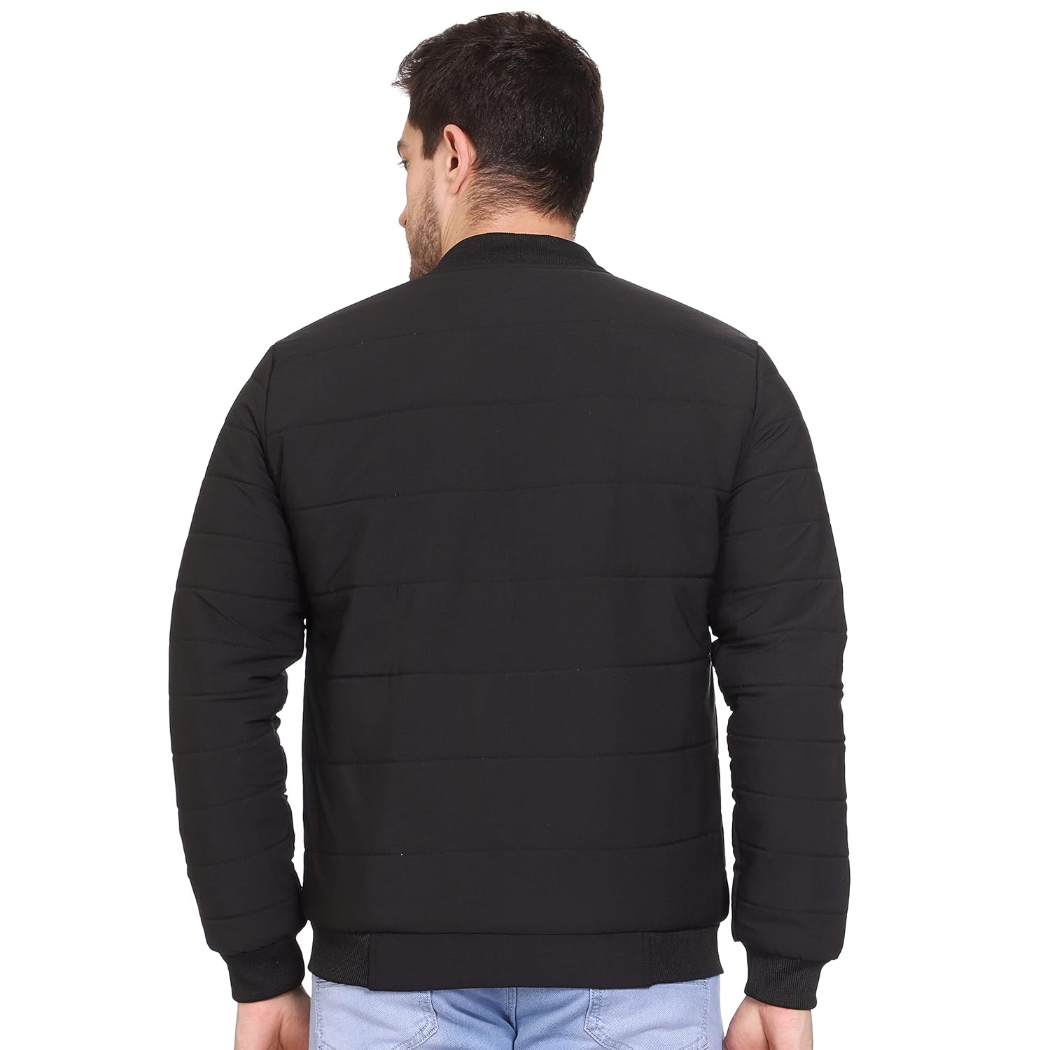 THIS MENS BOMBER JACKET HAS VERY HIGH QUALITY POLYSTER MADE WITH FILLINGS.