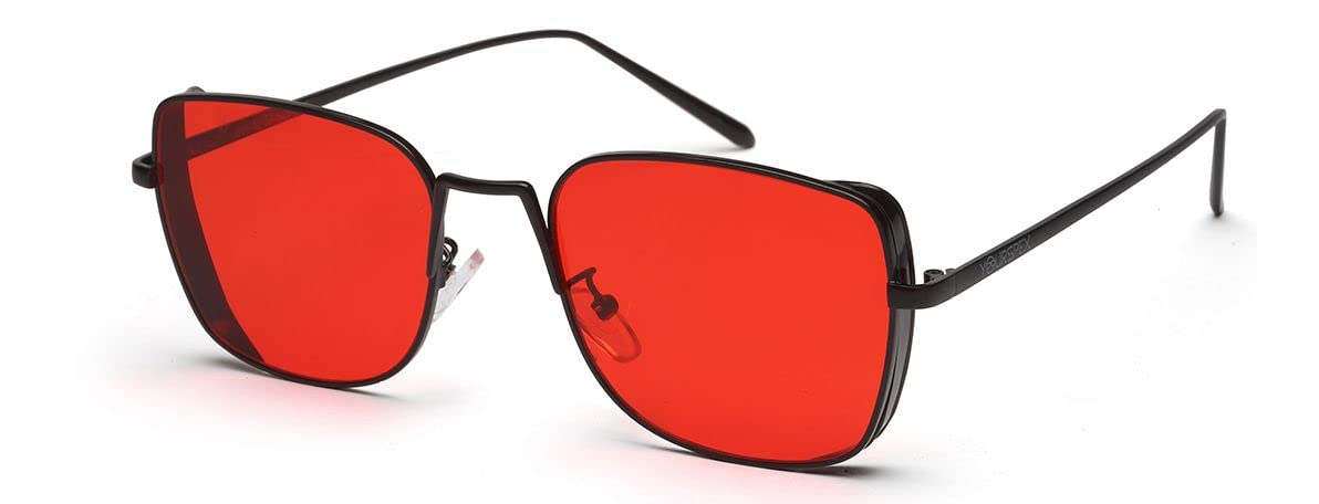YOURSPEX Sunglasses Men Women Goggles UV Protected – Stylish Chasma Polycarbonate Lenses Black Metal Frame, Red Squared