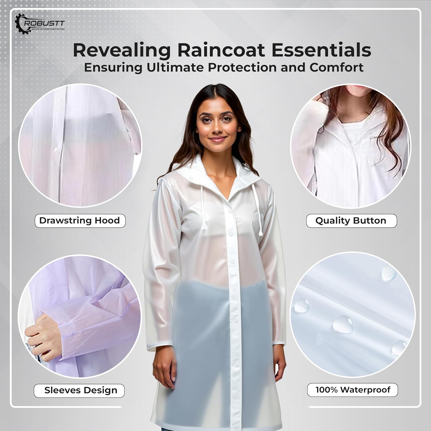 Premium Quality & Dual Layered: Indulge in both style and protection with the Robustt rain coat, crafted from 100% eco-friendly EVA material with dual layer technology. It boasts a non-toxic, odour-free composition and features a tear-resistant, transparent design, ensuring both comfort and fashionability on rainy days.