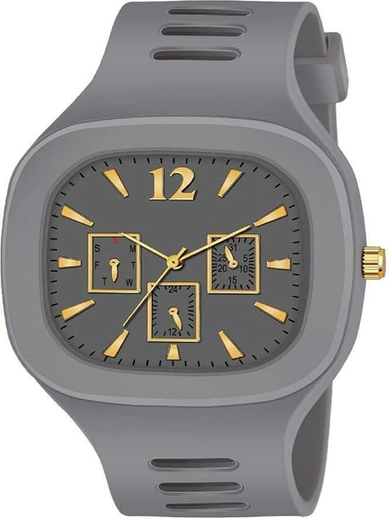 SBA PRIME presents a Stylish Analog Wrist Watch designed for modern men & boys who want fashion with comfort. Featuring a trendy square dial with golden detailing, this watch makes a bold style statement. The silicone strap is soft, durable, and comfortable for all-day wear, making it perfect for school, office, or casual outings. Available in multiple attractive colors – Green, Blue, White, Black & Grey – this watch lets you match your outfit and personality effortlessly. The analog display with a premium finish enhances your style quotient while ensuring functionality. Lightweight yet durable, it is built to withstand daily use. Whether for self-use or as a thoughtful gift, this SBA PRIMEwrist watch is an ideal choice. It combines style, comfort, and reliability, making it a must-have accessory for every wardrobe. Upgrade your fashion with SBA PRIME and stand out with elegance and trend.